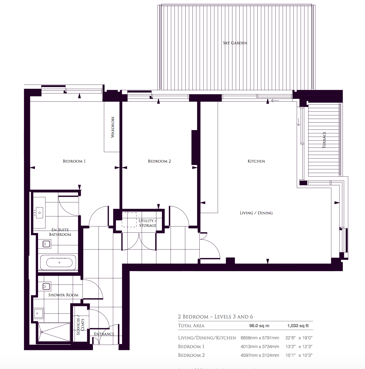 This exclusive property benefits from great living spaces extending to 1027 Sqft, boasting floor to ceiling windows throughout, a large open plan kitchen with reception room leading to a large private roof terrace, two double bedrooms of which one has an en-suite bathroom, a guest bathroom and ample storage throughout.